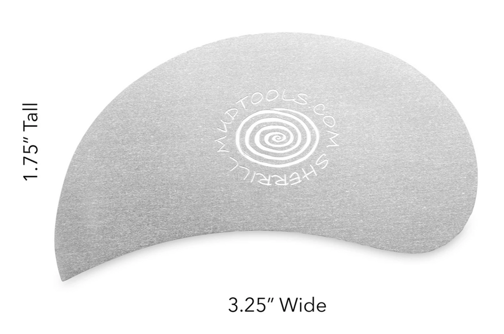 Paisley Scraper proves itself indispensable for sculpting, shaping, and refining leather hard clay. The tight inside radius is good for working around joints (for example, at the inside of a teapot spout.) It is available in three different edges:
