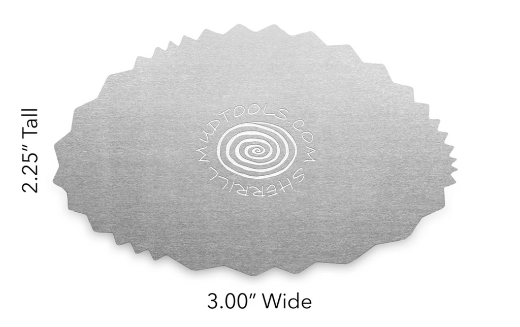 Our Drawing Ribs are made out of cutlery grade stainless steel. Think of our Drawing Ribs like different pen nibs or brush tips.The Pebble shape is great for concave surfaces like the inside of a bowl. Choose from 5 different edges: