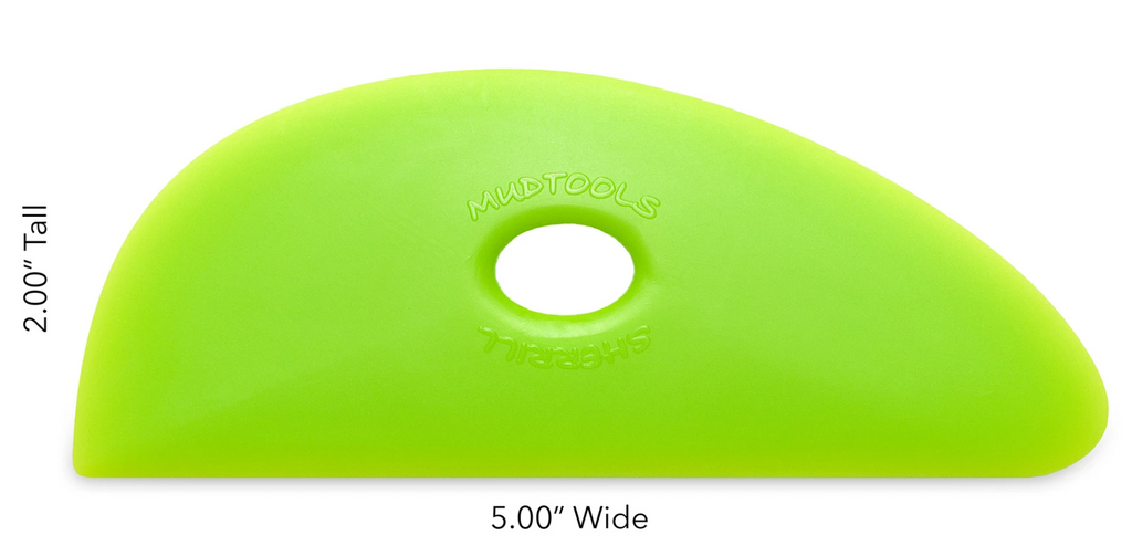 Shape 3 is 5" wide and gives a good sweep across the clay. This is a good rib if you throw larger objects. Michael Sherrill uses the Green Medium or Blue Firm because they are stiffer and bite into the clay.