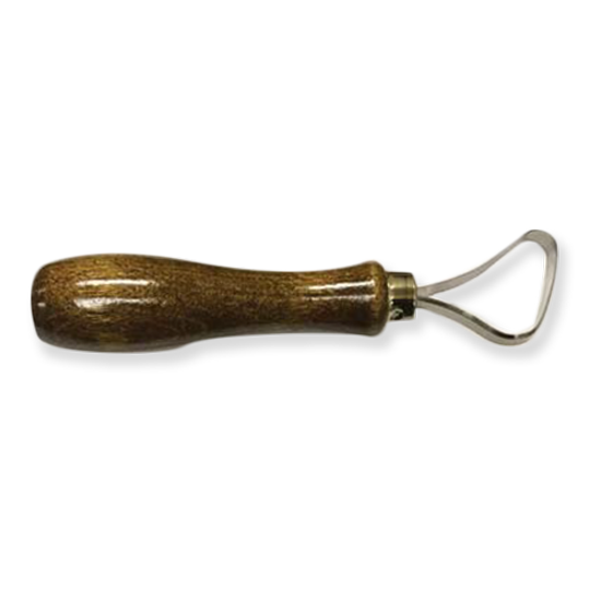 Designed to withstand the heavy side loads encountered when working on large sculpture and wheel thrown pieces. These tools are made of sharpened stainless steel flat ribbon and are assembled with heavy duty brass ferrules. Their contoured hardwood handles make a comfortable fit for any size hand.