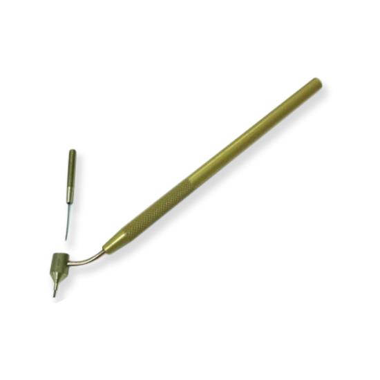 Designed specifically for the application of gold and other metallic paints. Fill up the well with your medium, and let our engineered design do its job of a NO DRIP OR SPILL application, putting that design only where you want it. This comfortable tool holds exactly like a pen, gliding smoothly over the surface. The specialized design of this pen does not allow for interchangeable tips. We, however, have two pens: GPL - large .49mm tip and GPS - small .26mm tip. Both pens come with a stem cleaner for cleaning out the precision tip hole of the pen.