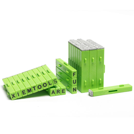 Xiem attachable letters are easy to snap together to form words or phrases--never worry about lining letters up again. Words or phrases can be aligned horizontally or vertically. Great with ink, paint, clay, and underglazes.