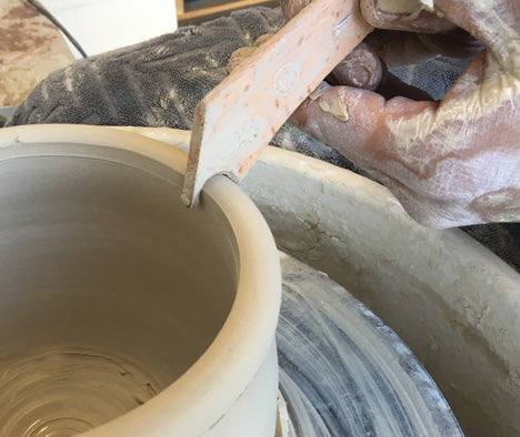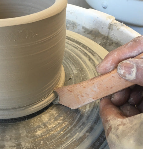 With a sharp and pointed angle at one end for cutting, slicing, scraping, and trimming the bottom of pots while they are on the potter’s wheel, the large Foot Shaper is an essential clay tool for ceramic artists. The opposite end of the Foot Shaper tool has a smooth concave edge to effortless create a consistent foot on all pieces. Manufactured from the finest quality of imported beechwood, the Foot Shaper is handcrafted by well-trained artisans to ensure the highest quality. The Foot Shaper is available at this time in medium and large and the length is 8.5 inches.