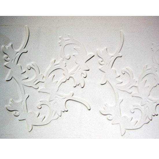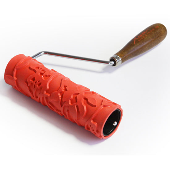 Each roller is made of high-quality rubber and measures 7" length x 2" diameter. Different roller patterns are easily interchanged, using the stainless steel/hardwood roller handle. The design intention behind our rollers is to allow artists to customize their embellishment. Use a single roller pattern or combine with other textures and overlays to create an infinite variety of surface treatments.