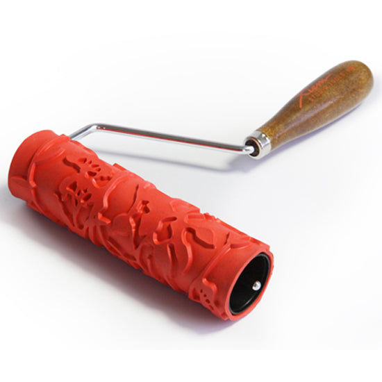 Each roller is made of high-quality rubber and measures 7" length x 2" diameter. Different roller patterns are easily interchanged, using the stainless steel/hardwood roller handle. The design intention behind our rollers is to allow artists to customize their embellishment. Use a single roller pattern or combine with other textures and overlays to create an infinite variety of surface treatments.