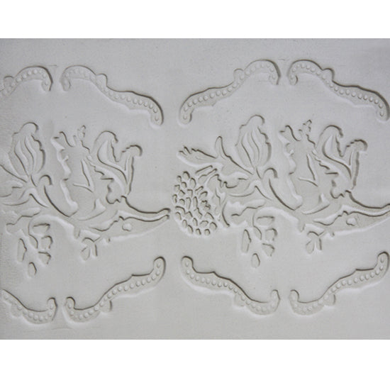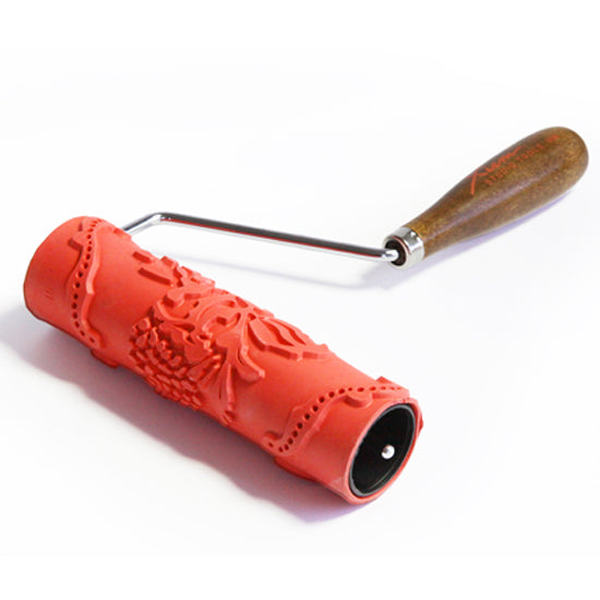 Each roller is made of high-quality rubber and measures 7" length x 2" diameter. Different roller patterns are easily interchanged, using the stainless steel/hardwood roller handle. The design intention behind our rollers is to allow artists to customize their embellishment. Use a single roller pattern or combine with other textures and overlays to create an infinite variety of surface treatments.