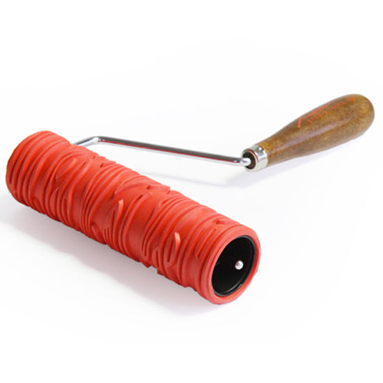 Each roller is made of high-quality rubber and measures 7" length x 2" diameter. Different roller patterns are easily interchanged, using the stainless steel/hardwood roller handle. The design intention behind our rollers is to allow artists to customize their embellishment. Use a single roller pattern or combine with other textures and overlays to create an infinite variety of surface treatments.