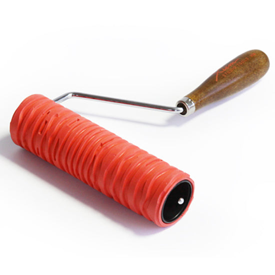 Each roller is made of high-quality rubber and measures 7" length x 2" diameter. Different roller patterns are easily interchanged, using the stainless steel/hardwood roller handle. The design intention behind our rollers is to allow artists to customize their embellishment. Use a single roller pattern or combine with other textures and overlays to create an infinite variety of surface treatments.