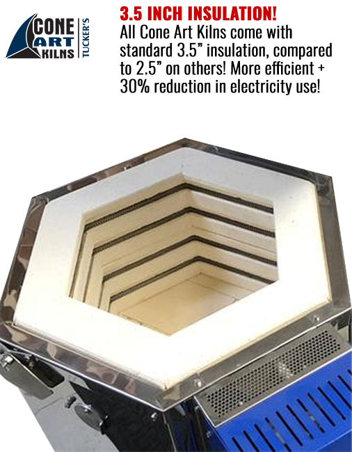 It is a double insulated kiln with 2.5 ” premium brick plus 1″ of block insulation, totalling 3.5" in kiln insulation.