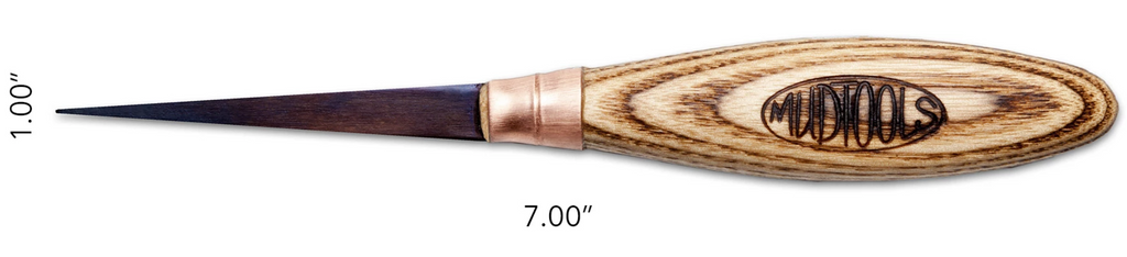 This beautiful Fettling Knife is part of Michael Sherrill’s Signature Series. Handcrafted in Michael’s studio from professional grade carbon steel, copper and found local hardwood, this knife is a work of fine craft in it’s own right. At Mudtools, we strive to make tools that are functional, durable and beautiful. Our turned wooden handle grips comfortably and rolls easily in your hand. The tempered blade has excellent flex and strength. We sell two blade lengths: