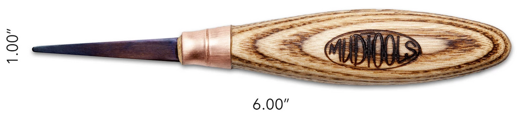 This beautiful Fettling Knife is part of Michael Sherrill’s Signature Series. Handcrafted in Michael’s studio from professional grade carbon steel, copper and found local hardwood, this knife is a work of fine craft in it’s own right. At Mudtools, we strive to make tools that are functional, durable and beautiful. Our turned wooden handle grips comfortably and rolls easily in your hand. The tempered blade has excellent flex and strength. We sell two blade lengths:
